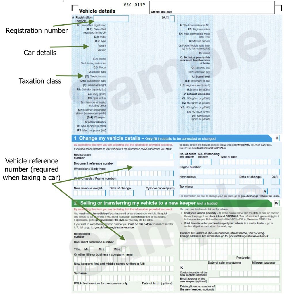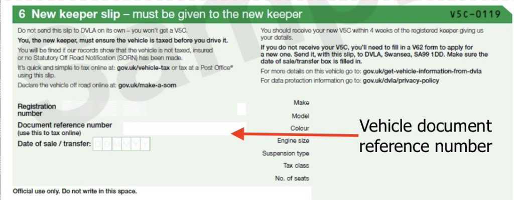 To tax your car, you’ll need the 11-digit vehicle reference number that’s in your car’s logbook, on the reminder from the DVLA, or on the green ‘new keeper’ slip if you’ve recently bought the car.